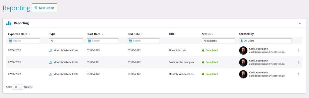 The new reporting feature allows you to create exports with various filter options. With the reports, you keep track of your monthly vehicle costs and more report types will be available soon.