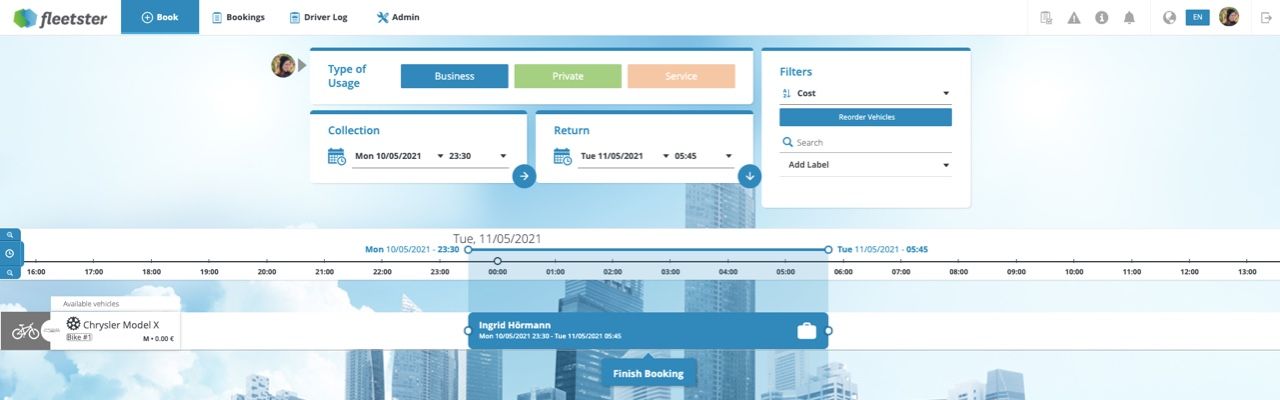 Booking a bicycle through the fleetster web application now allows specifying the intended usage type (business, private or service).