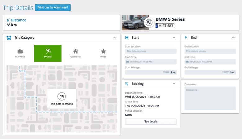Now we are on the verge of an official market launch and have integrated a permission concept, which is necessary for fleets. Admins can neither see (1) uncategorized trips nor (2) private trips of users.