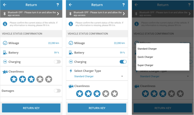 Finishing a booking with an electric vehicle now allows the driver to specify the charging state and charger type.