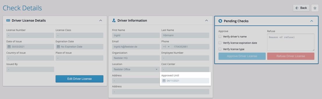 In order to improve clarity of the behaviour of the driver license check module, the date until which a driver can book or use vehicles is now clearly highlighted in the user profile and check details.
