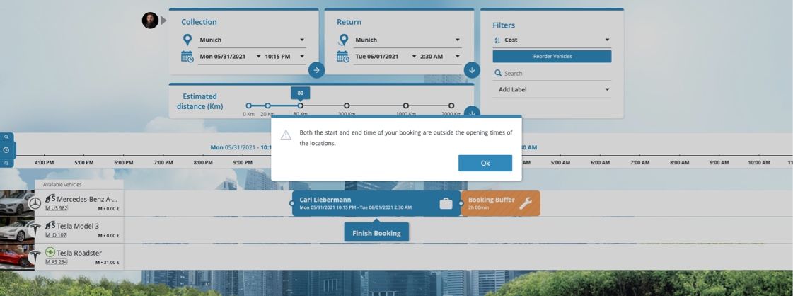 A new setting is now available allowing administrators to specify that vehicles may not be booked outside of opening hours.