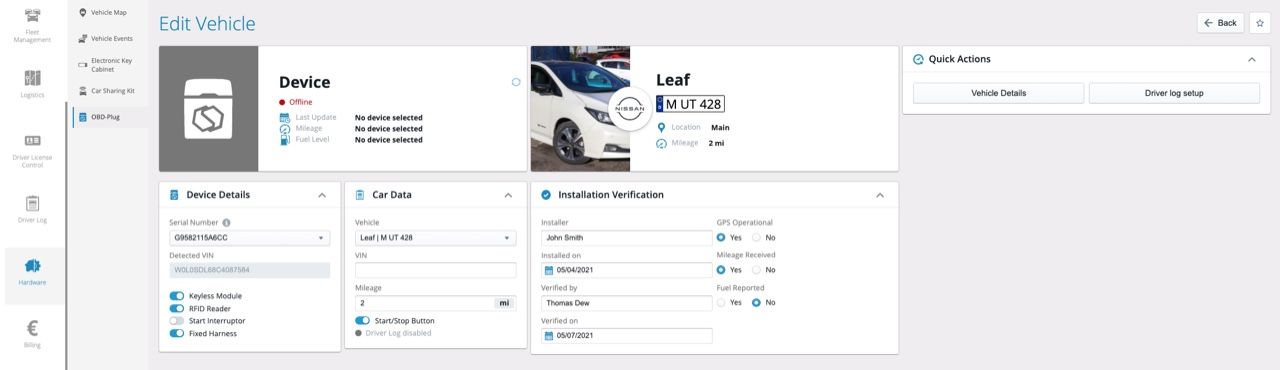 Geotab is the world-market leader in telematics and offers a simple to use Car Sharing Kit that is connected to the vehicle via the OBD port and makes it easy to install.