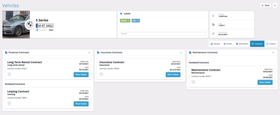 Contract information is now conveniently available within the digital vehicle file. This provides a clear overview of the active and past contracts of every vehicle.