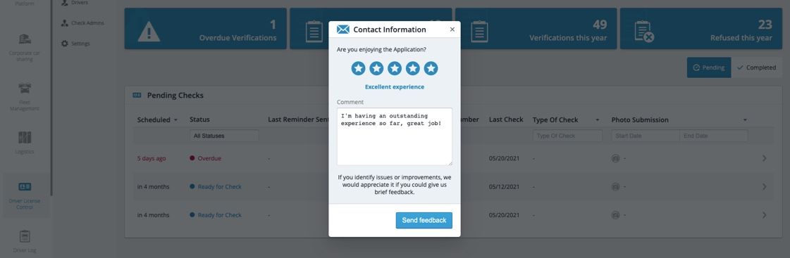 The checks section of the fleetster driver license check module has been improved with the addition of mini-analytics cards showcasing latest usage of the feature.